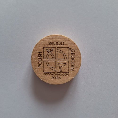 Awers: • logo Geocaching.com • napis Polish Wood Geocoin wraz z rokiem wydania, umieszczony w dolnej części